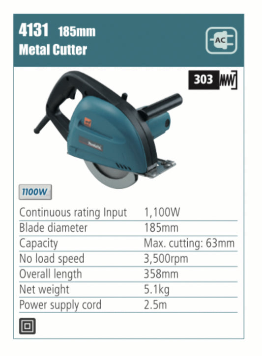 MAKITA 4131 Metal cutter, 185mm blade diameter, 1100W