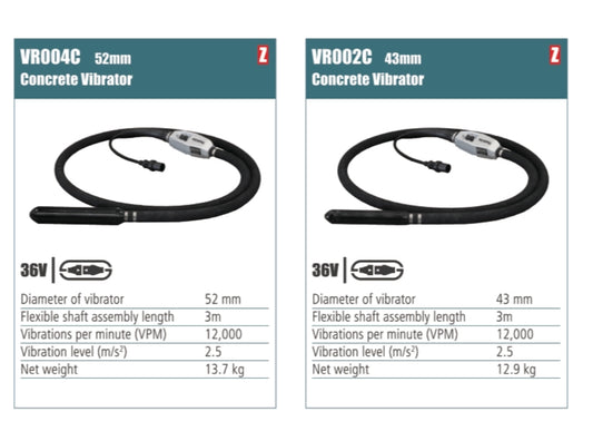 MAKITA Concrete vibrator shaft 43/52mm vibrator diameter