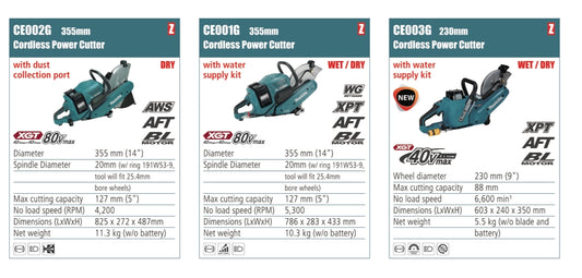 MAKITA Cordless Power cutter dry/wet 230/355mm wheel diameter