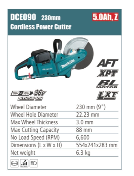 MAKITA DCE090 Cordless Power cutter, 230mm wheel diameter