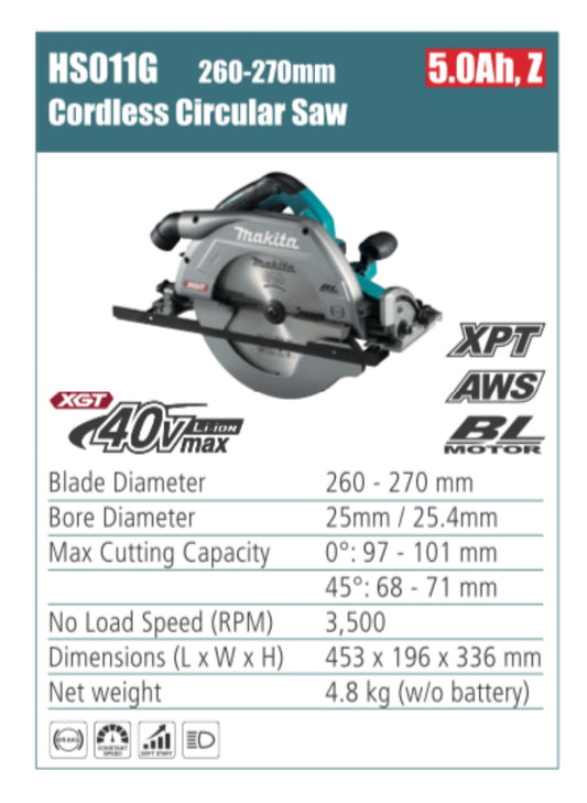 MAKITA Cordless circular saw 235/270 blade diameter, without battery
