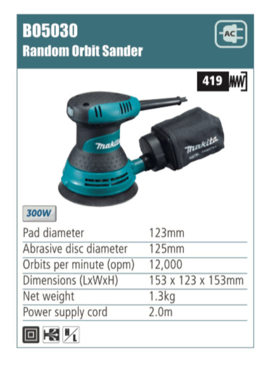 MAKITA B05030 Random Orbit Sander 123mm pad diameter, 300W