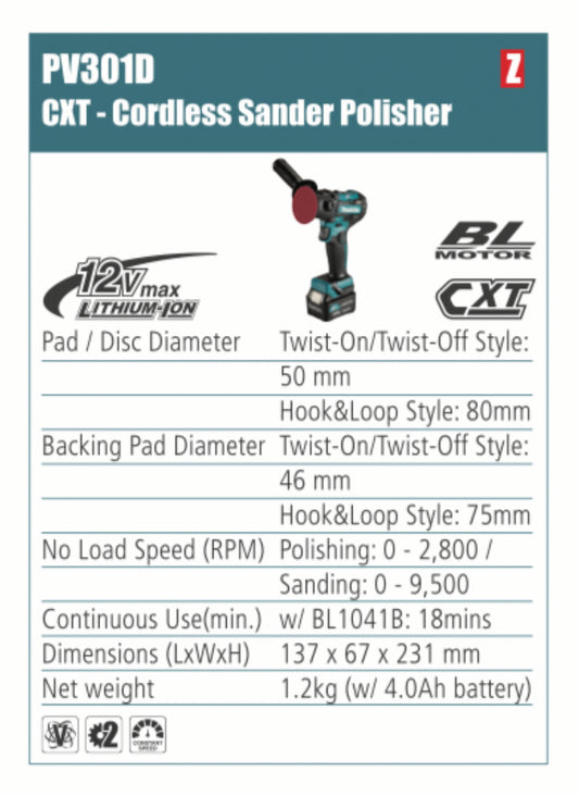 MAKITA Cordless Sander Polisher 50mm pad diameter, without battery
