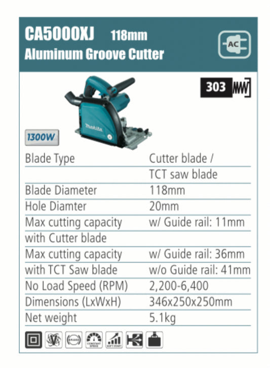 MAKITA CA5000XJ Aluminium groove cutter, 118mm blade diameter, 1300W