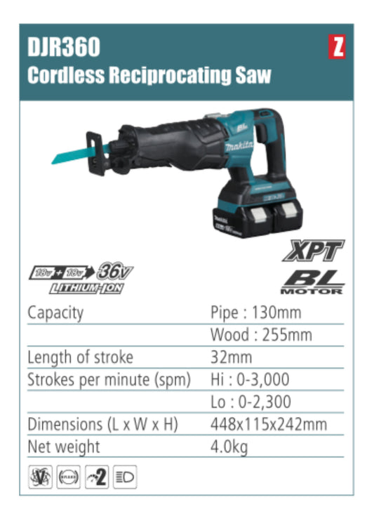 MAKITA Cordless Reciprocating Saw 32mm length stroke, without battery