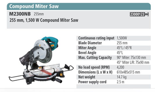MAKITA M2300NB Compound Miter Saw 255mm blade diameter, 1500W