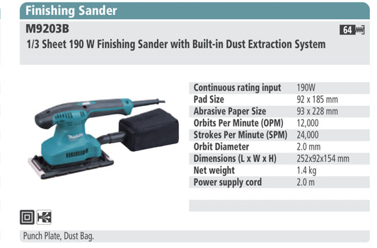 MAKITA M9203B 1/3 Sheet 190W Finishing Sander with Built-in Dust Extraction System