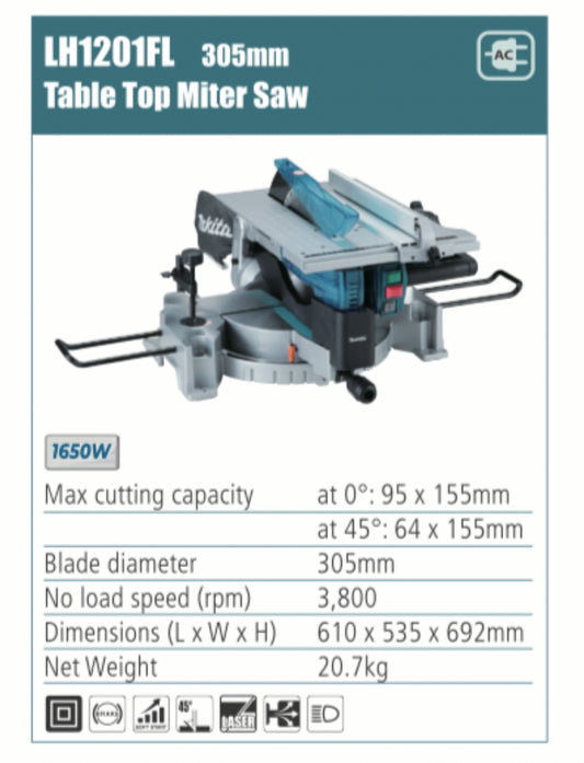 MAKITA LH1201FL Table Top Miter Saw 305mm blade diameter, 1650W