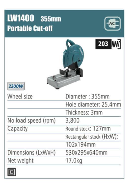 MAKITA LW1400 Portable cut-off 355mm wheel diameter,2200W