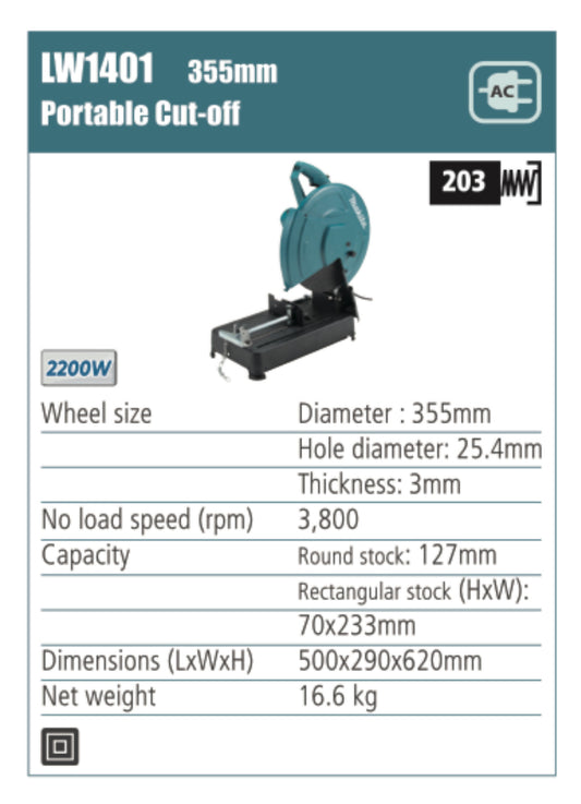 MAKITA LW1401 Portable cut-off, 355mm wheel diameter,2200W