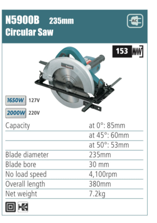 MAKITA N5900B Circular Saw, 235 Blade diameter, 1650/2000W